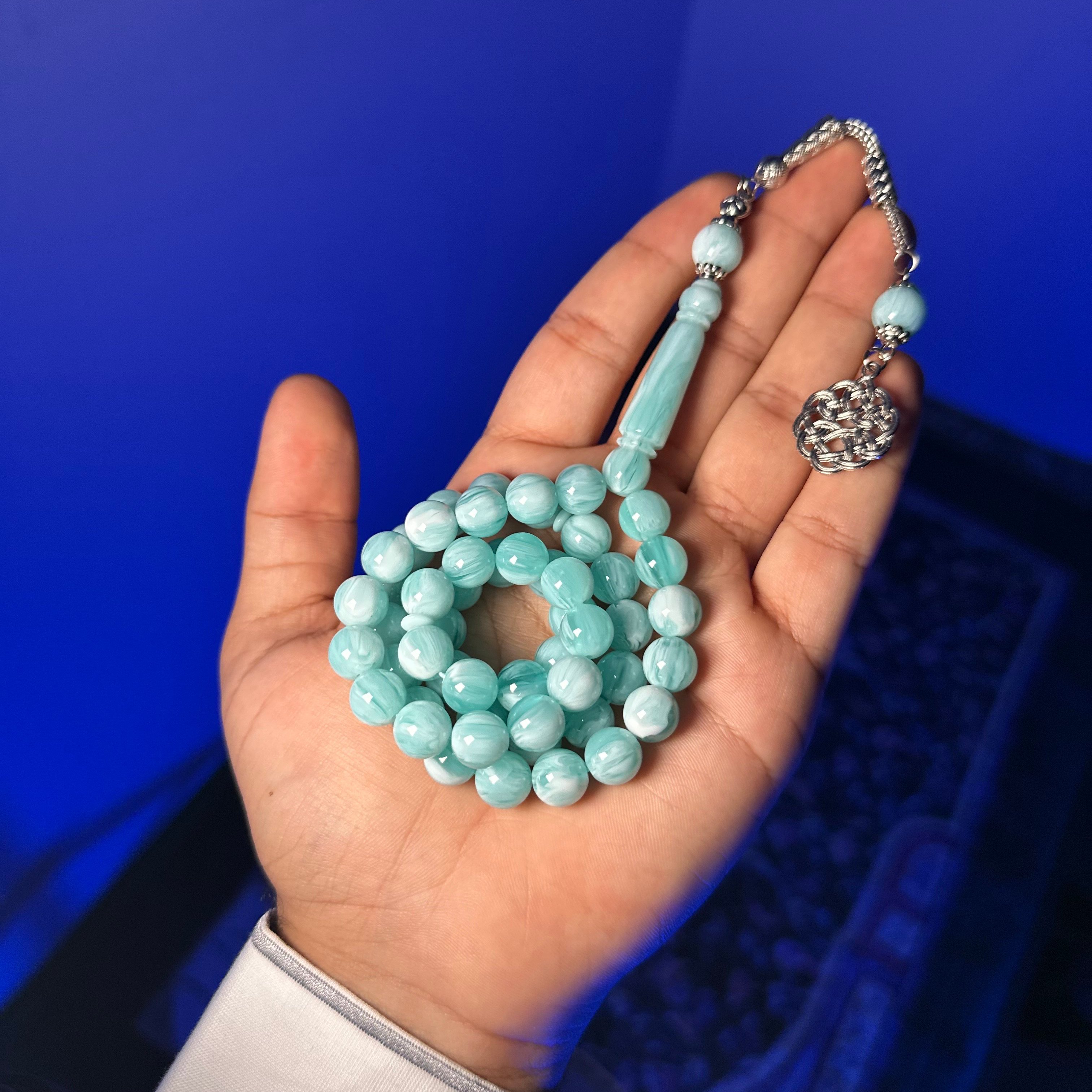 مسباح البكلايت خفيفة الوزن مصممة للاستخدام اليومي، تتميز بتصميم مريح وأنيق، عليها طربزونة ستيل مما يعطي السبحة جمال وفخامة.