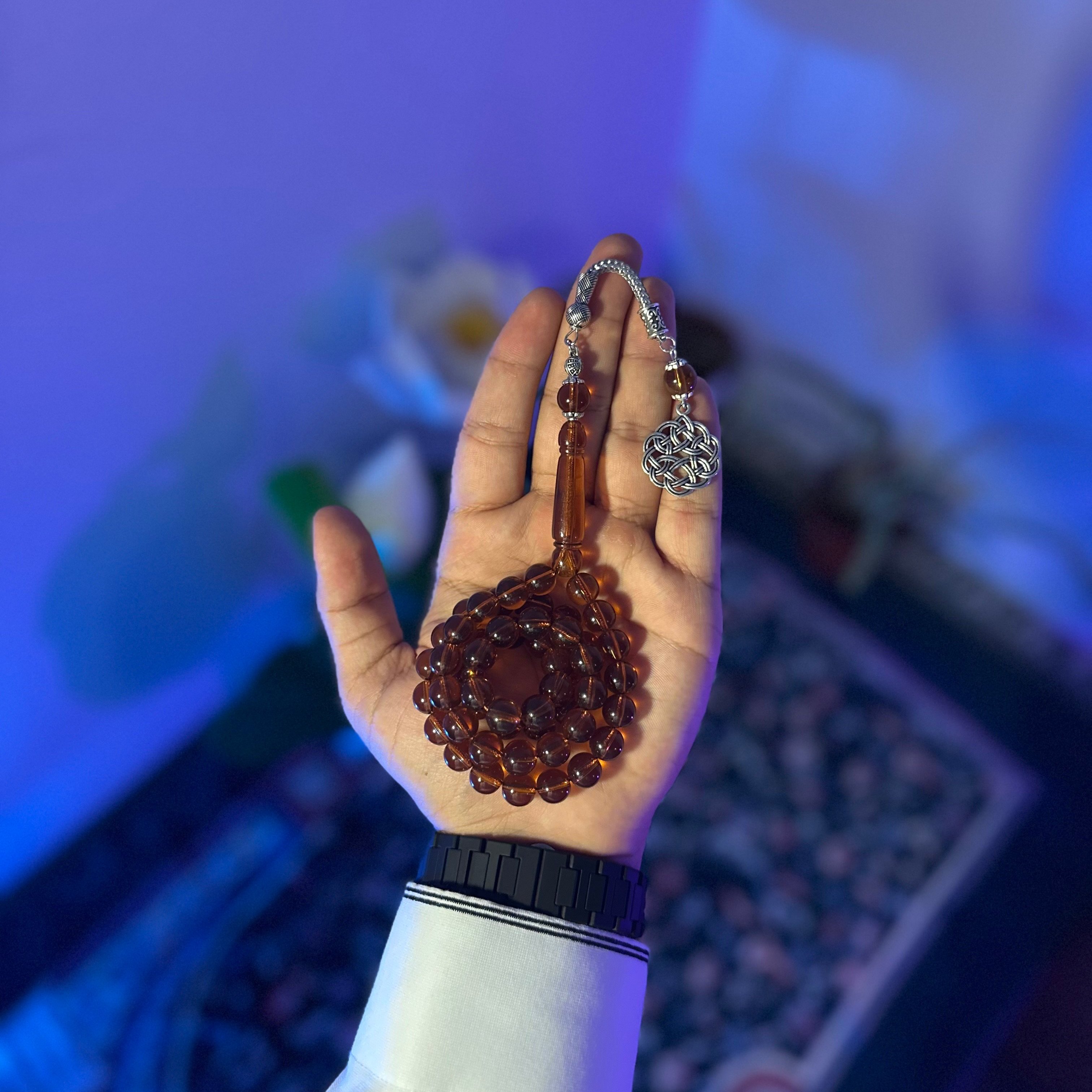 مسباح البكلايت خفيفة الوزن مصممة للاستخدام اليومي، تتميز بتصميم مريح وأنيق، عليها طربزونة ستيل مما يعطي السبحة جمال وفخامة.