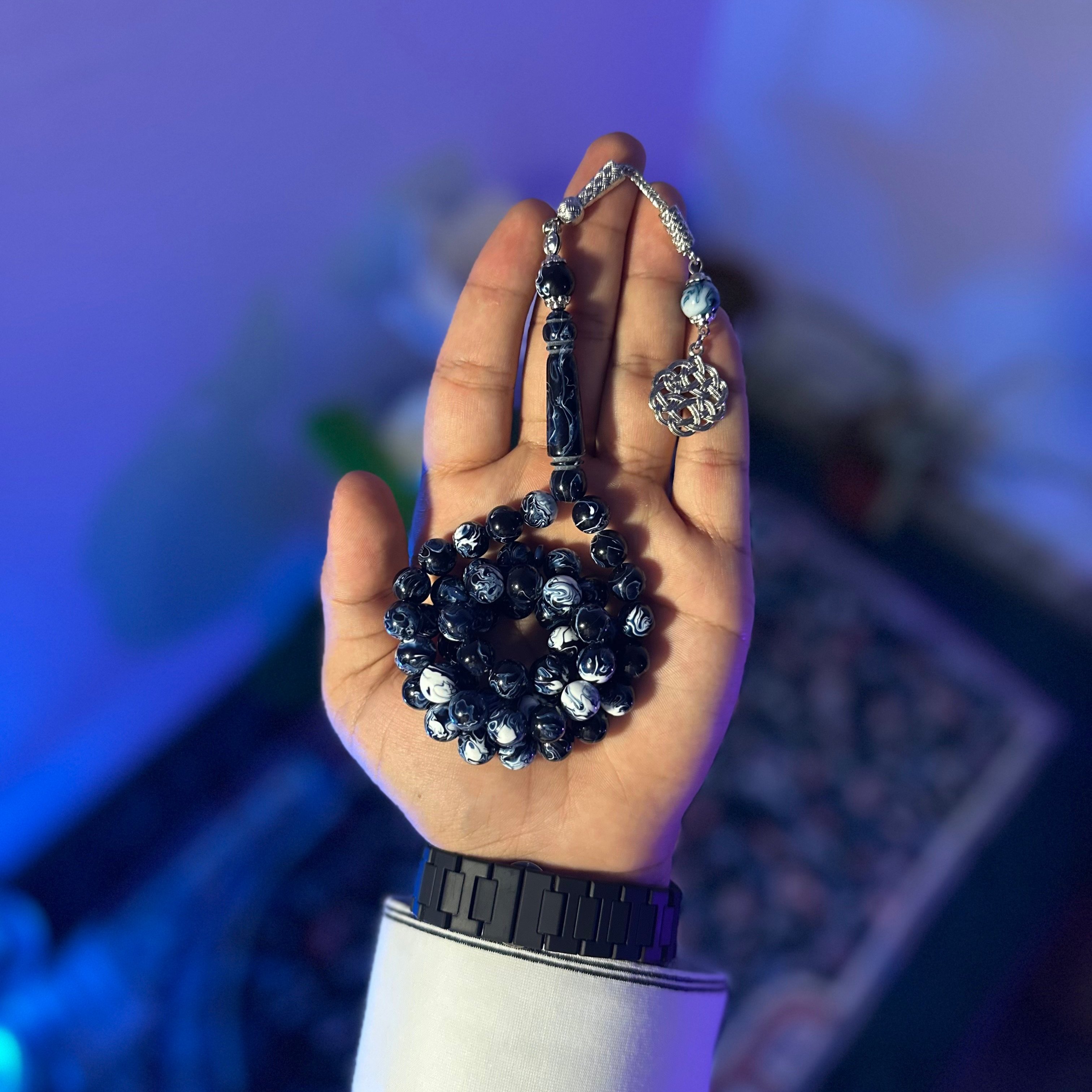مسباح البكلايت خفيفة الوزن مصممة للاستخدام اليومي، تتميز بتصميم مريح وأنيق، عليها طربزونة ستيل مما يعطي السبحة جمال وفخامة.