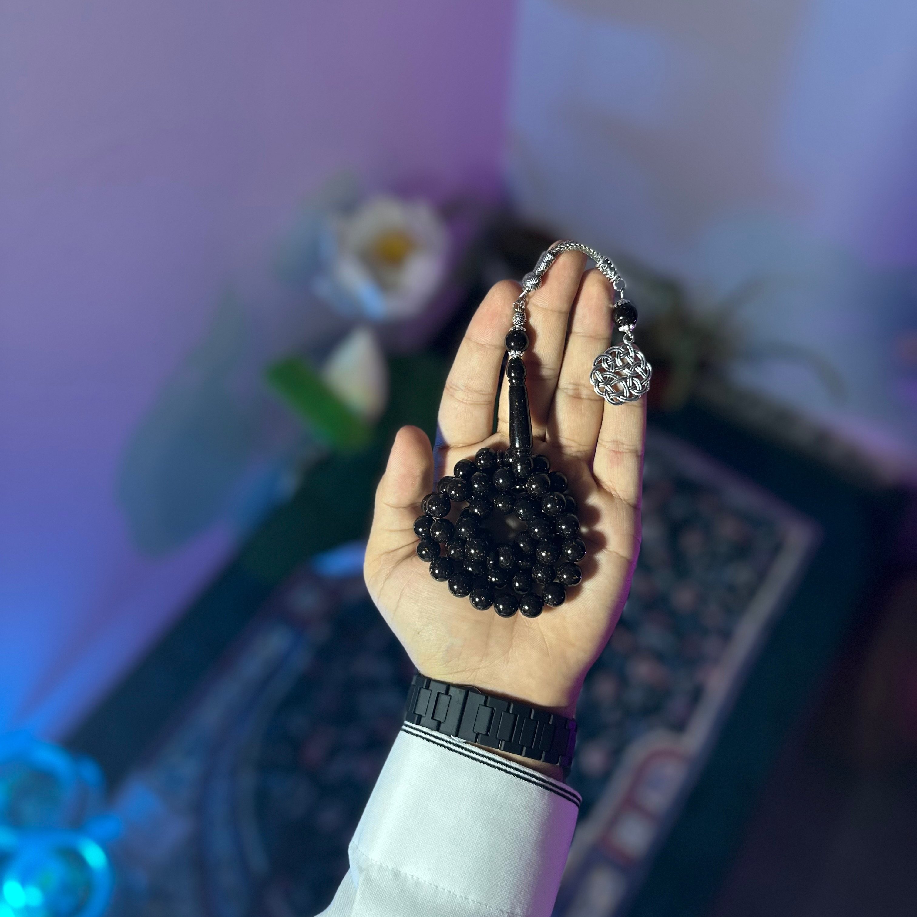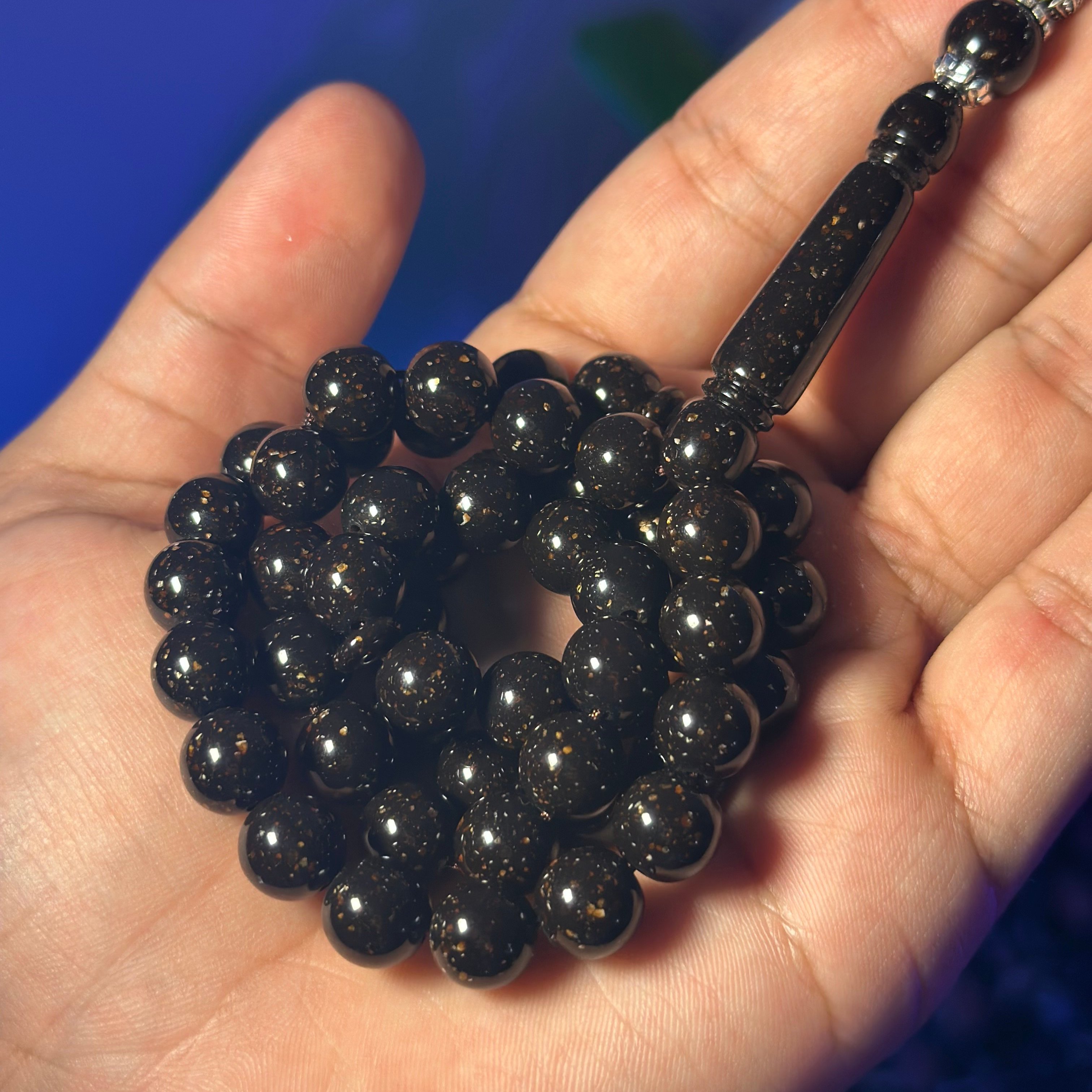 مسباح البكلايت خفيفة الوزن مصممة للاستخدام اليومي، تتميز بتصميم مريح وأنيق، عليها طربزونة ستيل مما يعطي السبحة جمال وفخامة.